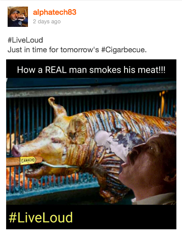 Use #cigarbecue with entries