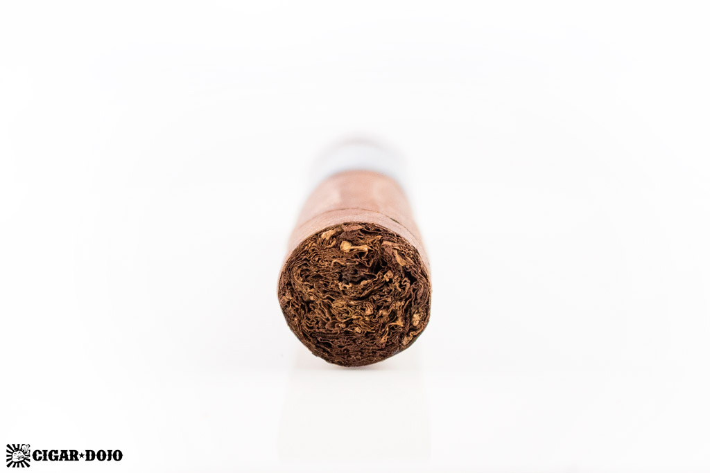 The wrapper is about as dark as you can get without becoming a maduro, I’d call it Colorado—having a reddish clay hue. On closer examination, there is an intricate network of very thin veins across the wrapper, taking on a web-like appearance. And perhaps it was just my samples, but it looks like our roller got a little glue-happy—having thin splotches running the length of the stick. It’s a fairly oily wrapper, with a muted sheen. Construction-wise, it feels like a medium-tight pack, having a solid exterior and finished with what appears to be a double cap.