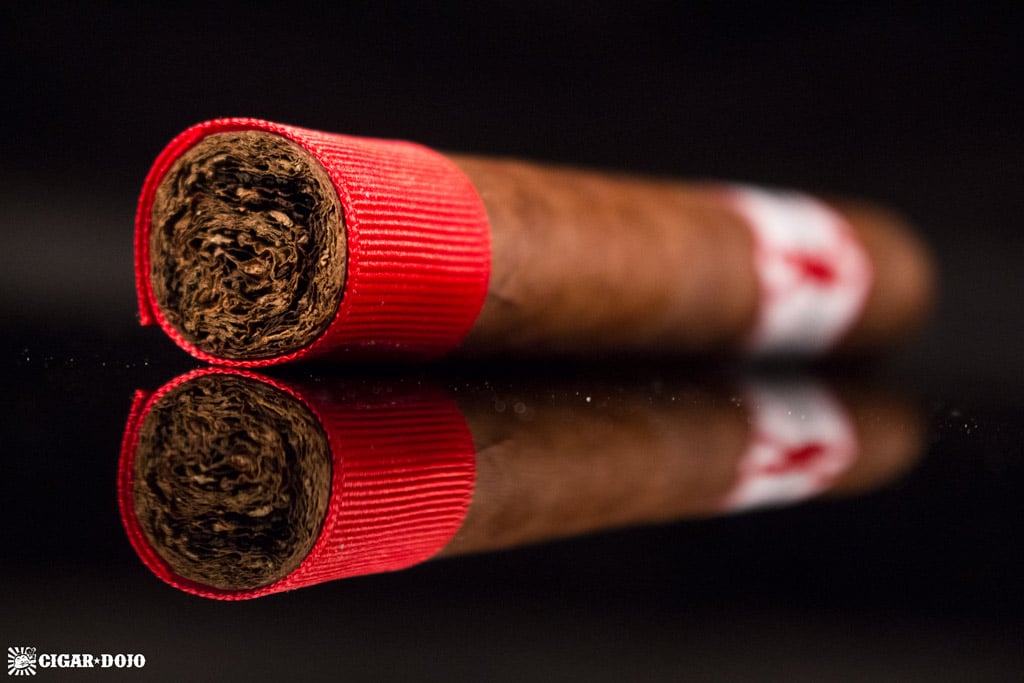 The cut is clean, revealing a surprisingly easy pre-light draw (almost too easy). Flavors are of citrus, cedar, and various spice cabinet aromas. On the wrapper there are subtle, tangy notes and on the foot you will find a petting zoo muskiness.