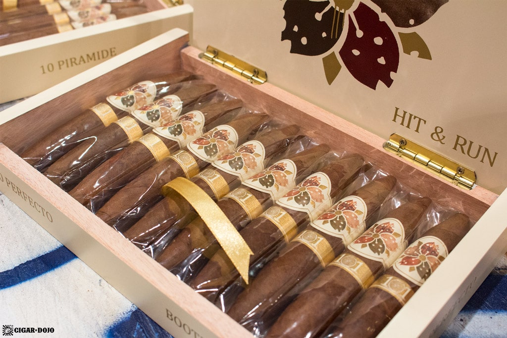 Hit & Run is the first collaboration from Matt Booth and Robert Caldwell. The cigars showcase a soft, nuanced blend like never before seen from Matt Booth and Room101—offering a profile much more in line with Caldwell’s lineup (such as Eastern Standard or Dos Firmas). The cigars are listed neither as “Room101” or “Caldwell” but do display imagery from both brands in the marketing. Hit & Run made its way to a select number of retailers just prior to the show, though the full launch has yet to be shipped.