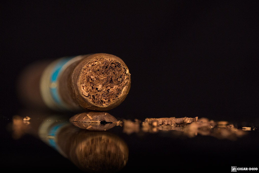 One of the first things you’ll about this cigar is the striking sky-blue, cream, and gold label. It’s a not-so-common color scheme among cigar labels and, honestly, one I find quite refreshing.