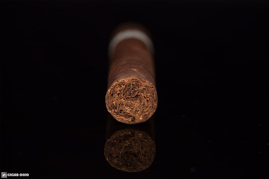 Into the second third, I start to get excited as the cigar begins to move away from that very impressive, yet very straightforward licorice-heavy flavor. Now thereโs a little bit of complexity happening and I can taste dark, rich blackstrap molasses, pure kola nut bittersweetness, and a wintergreen freshness. Halfway through and this cigar has turned into an early childhood Christmas memory: eating Pfeffernรผsse (though I called them “feffer-cookies”). The profile mobilizes in a more complete form: ginger, cardamom, molasses, pepper, and anise, with a sweet butter cookie creaminess. This is a vast improvement over the first third. The strength remains medium, and (somewhat thankfully) the flavor has backed off a little bit to medium full. The burn remains uneven but doesnโt require a correction.