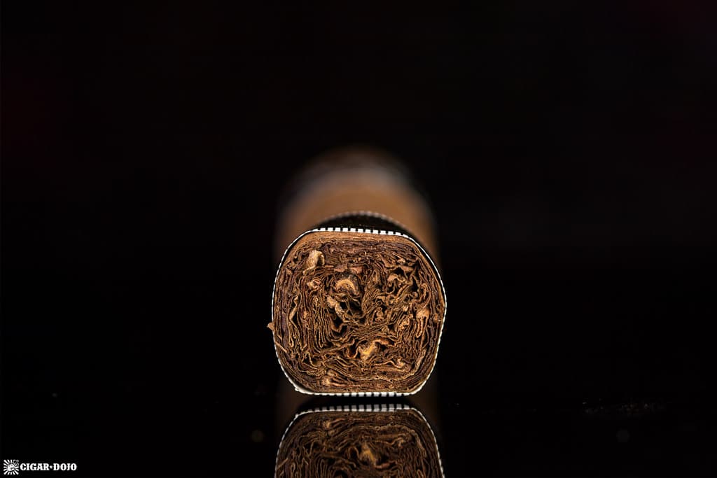 As mentioned above, one sample had a very solid plug between the cap and the band. I was nervous that trying to open it with my draw tool would cause a wrapper split, but I was lucky. Once getting it to a somewhat serviceable draw, a massive creamy note was foremost, with a sour fruity note that reminded me of an Italian “orange” wine. There’s not a lot of aroma coming off the wrapper, perhaps a slight hay and tobacco nuance.