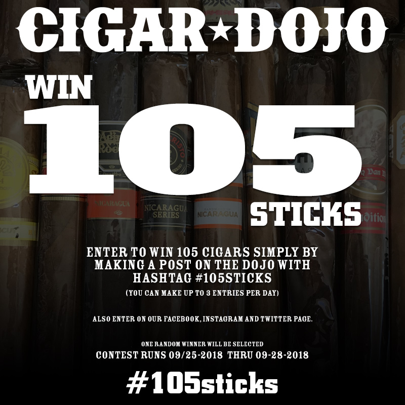 How would you like to win 105 premium cigars? To enter simply follow the Cigar Dojo on Twitter, and retweet this tweet! Contest ends the night of 09-28-2018. One random entry will win. GOOD LUCK!! #105sticks (also enter on our Instagram and Facebook) pic.twitter.com/OPhIKyTCxN