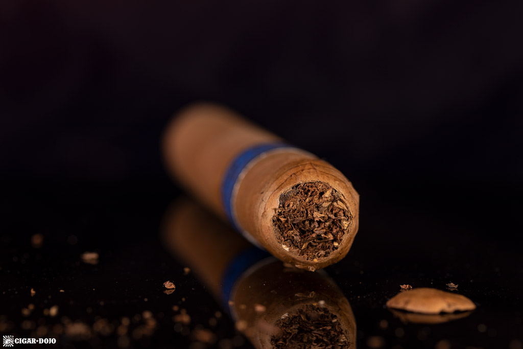 The retrohale produces a long-lasting aroma of cream, sourdough, and red pepper and goes very well with the consistent floral and citrus. The body of this cigar does increase slightly toward the end, finishing at a solid medium, progressing from its mild beginnings. The sweet Thai basil note continues to creep in every so often, like a welcome neighbor that pops in for nice visit. It stays long enough and compliments the existing flavors without ever getting bitter. Also notable is the tendency for this cigar to finish a bit hot—if one does not pace themselves, this can become acrid. Otherwise, the flavors and aromas—which are marvelously complimented by the aroma—hold steadfast throughout the smoking experience.