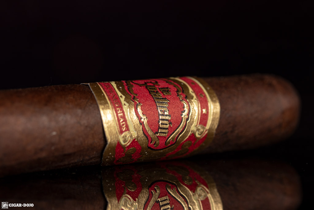 The Corona Gorda (5ā x 46) is one of four vitolas in the original release line. Along with La Coalición Gordito (5½ā x 50), La Coalición Siglo (6ā x 52) and La Coalición Sublime (6½ā x 54). Seen below is the original pre-release cigar band compared to the final release version.