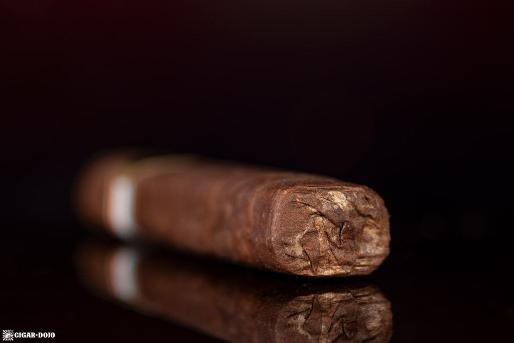 CQ2’s wrapper is on the lighter end of the maduro spectrum, with reddish undertones to the leaf. The leaf is well-rolled, being virtually seamless from head to toe and boasting a flawless belicoso head. The Sumatra wrapper isn’t the most aromatic, giving light notes of brown sugar sweetness and barnyard musk. A pre-light draw is essentially pointless (having a well-sealed closed foot), but this does give some pleasing flavors of heavy earth, cocoa, and something resembling chocolate cake.