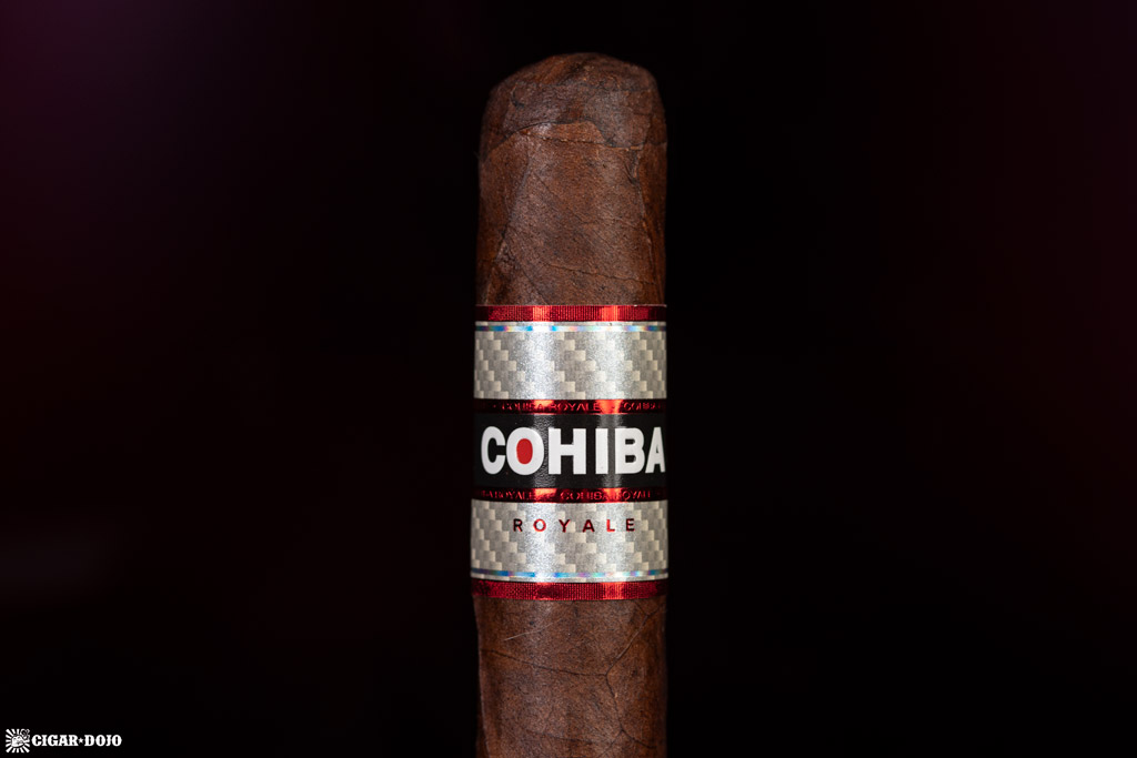 As soon as you lay eyes on the box, this cigar just screams luxury. The box is black and faux carbon fiber, with the lid drawing the most attention. It is domed and emblazoned with a faux silver carbon fiber strip containing the Cohiba name. ROYALE is etched in a thin font and is glimmering chrome. I half-expected to see a Cohiba-branded Cartier or Rolex watch in the box in the cigars’ place.