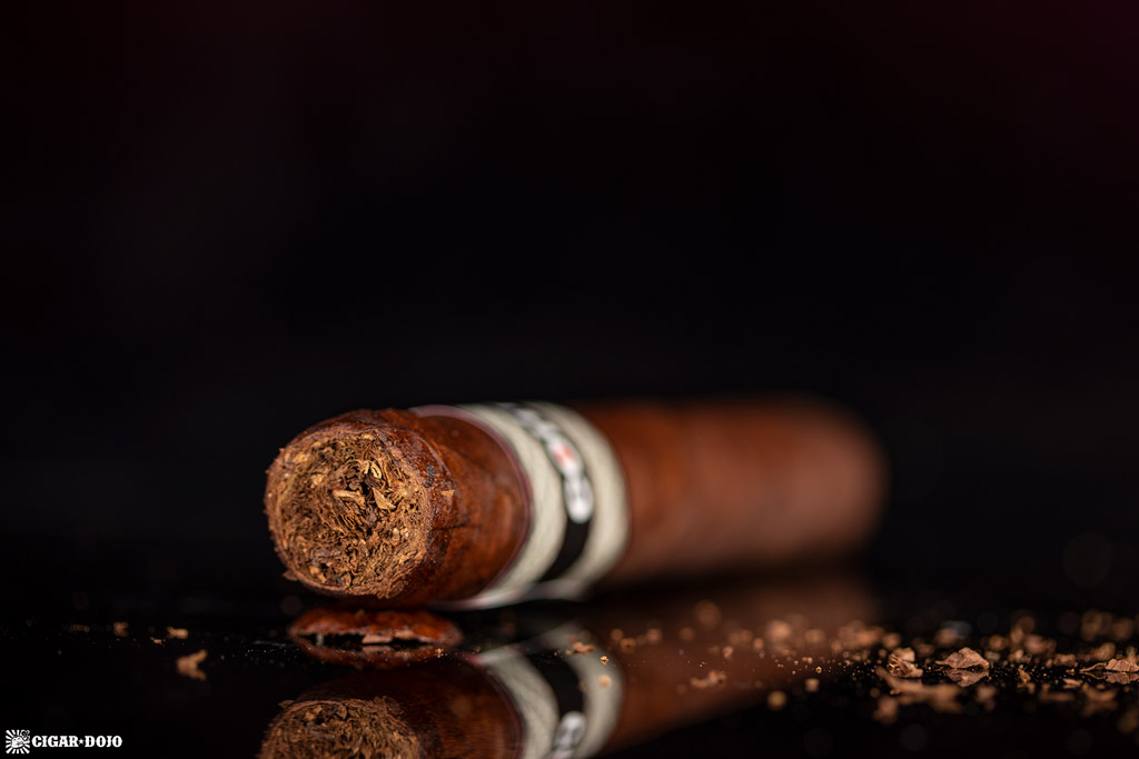 Pre-light aroma from the foot is sweet and earthy, with a little bit of pepper, which I would expect from a cigar blended with these tobaccos. The pre-light draw, which is pretty close to perfect, has the same notes as the foot, with an interesting grape-like note on the finish.