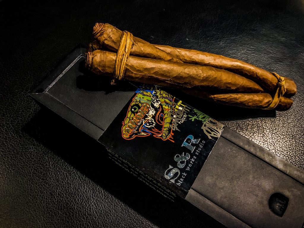 “We are very excited for the third release of S&R. This cigar represents the broad spectrum of cigars produced under the Black Works Studio line. It’s medium bodied with tons of complexity and the perfect amount of white pepper spice to let you know this is a BLK WKS cigar. The Nicaragua & Dominican blend is wrapped in a beautiful coffee colored Sumatra wrapper and topped with the S&R’s signature pig tail. Continuing with the serpent theme we made a very limited number of Lancero Culebras, so keep your eye out for those!” said James Brown, creator of BLK WKS and partner at Fabrica Oveja Negra.