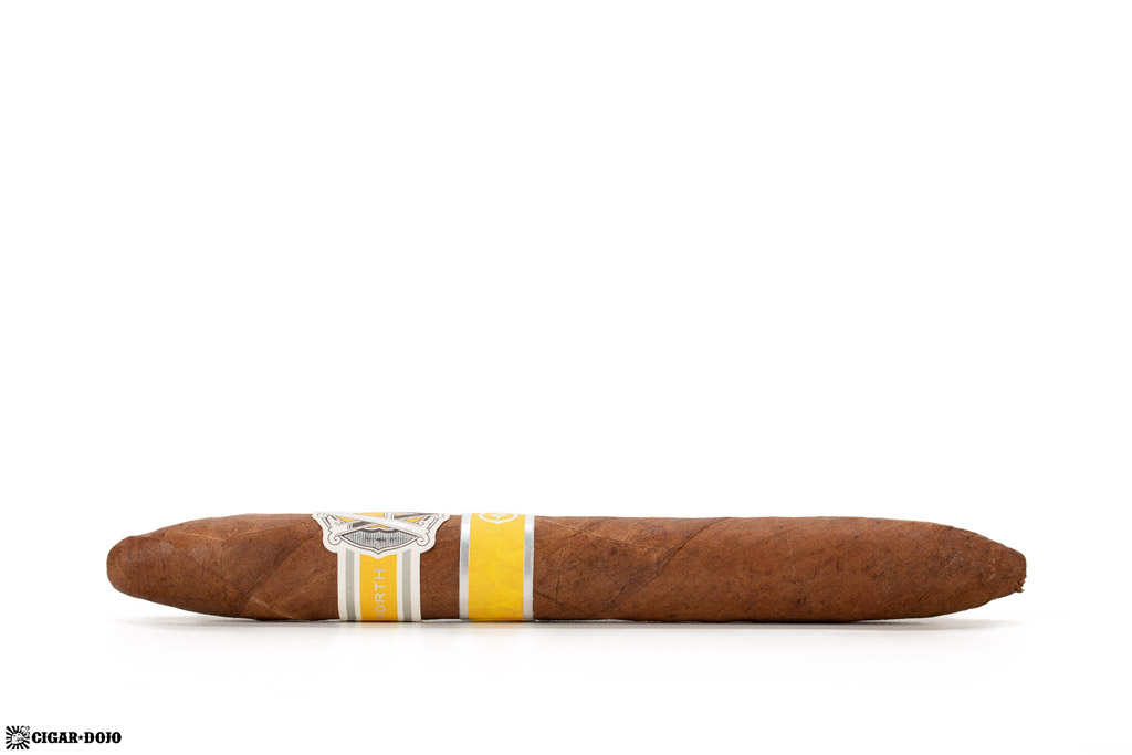 Like the East and West editions that preceded it, this cigar comes in one vitola, in this case being a shapely 6⅝″ × 50 perfecto. The North blend centers around Dominican tobaccos, including a wide variety of seed types and primings. This differs from the South cigar, which incorporates a four-country blend and a double dose of Ecuadorian Connecticut leaf throughout the binder and wrapper.