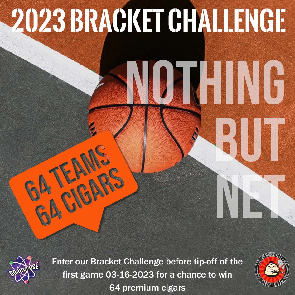 Nothing but net. It’s the 2023 Dojo Bracket Challenge and you can win 64 premium cigars by entering your bracket in our contest. You don’t need to know anything about college basketball to win, heck even a monkey with a dart has a chance. Click the and use group password: herf