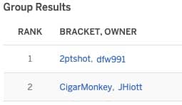 * You can create up to two brackets. If the same person finishes more than once in the Top 2, only one prize will be awarded to that person.