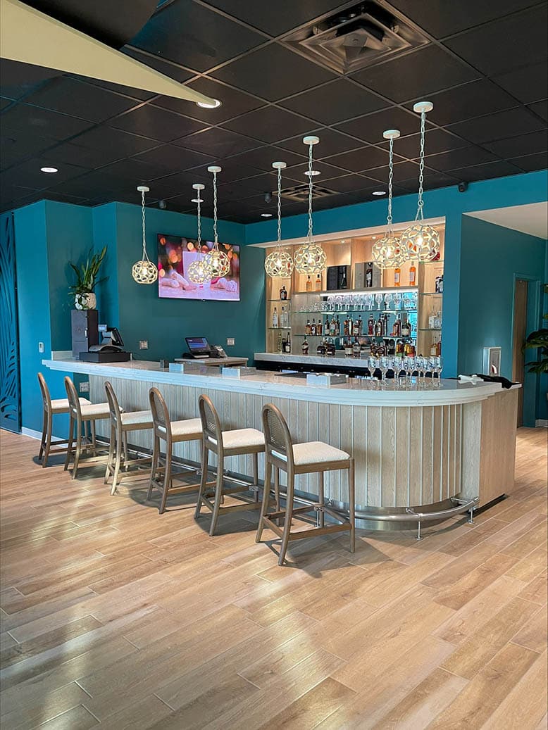 Bossier City is a meticulously-appointed sanctuary that infuses elements of a sophisticated cigar lounge with coastal allure, evoking earth tones and a spa palate to create a haven of indulgence and leisure. Buttery-soft leather seating, burlwood tables and plush club chairs create intimate nooks for conversation while an al fresco lounge offers panoramic views of the resort. At the heart of the lounge is a glass-enclosed humidor and a peninsula-shaped bar stocked with an array of wine and specialty spirits to satisfy an aficionado’s palate.