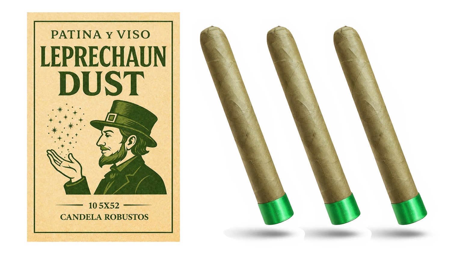 Patina y Viso has announced the upcoming release of Leprechaun Dust, a limited-edition candela cigar scheduled to begin shipping to retailers next month. The cigar is a 5 x 52 Candela Robusto and has already sold out at the manufacturer level.