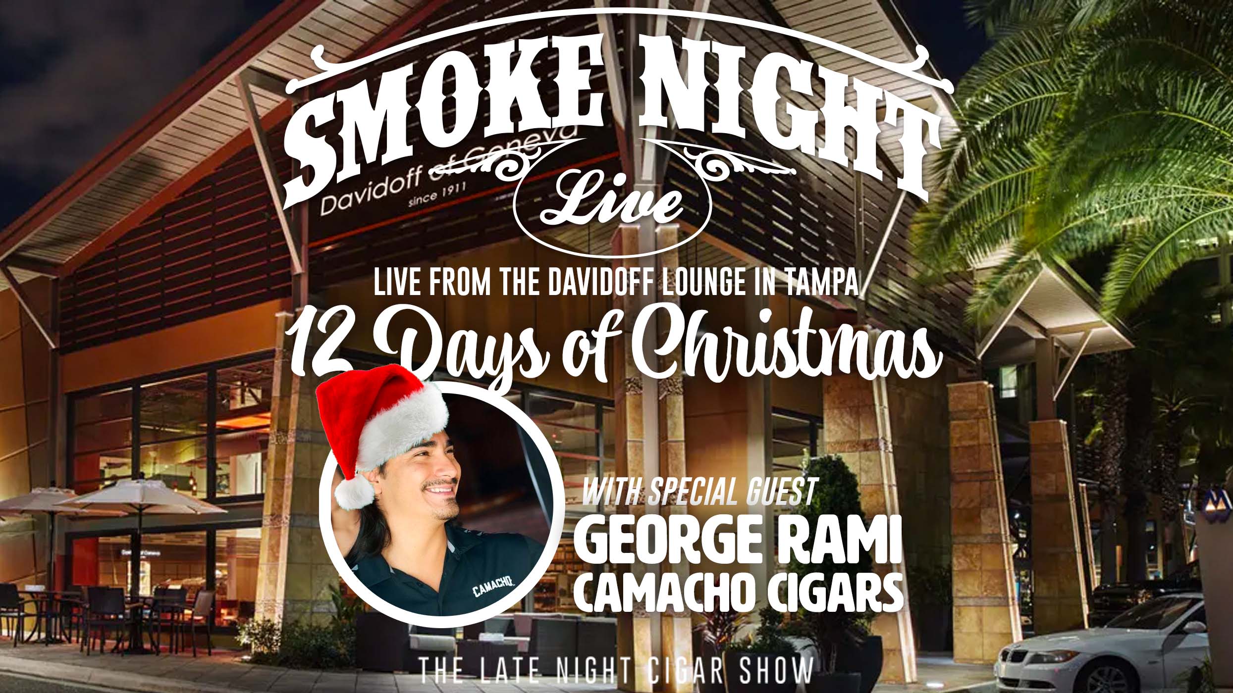December 3rd 2021, we are LIVE from the Davidoff Lounge in Tampa Florida with special Guest George Rami from Camacho Cigars as we kickoff the biggest giveaway ever on Cigar Dojo: the 12 Days of Christmas 2021 – brought to you by Camacho Cigars. We are giving away 12 boxes of the 2020 Camacho Liberty Series and you can enter to be the first winner just by tuning into this show and participating.